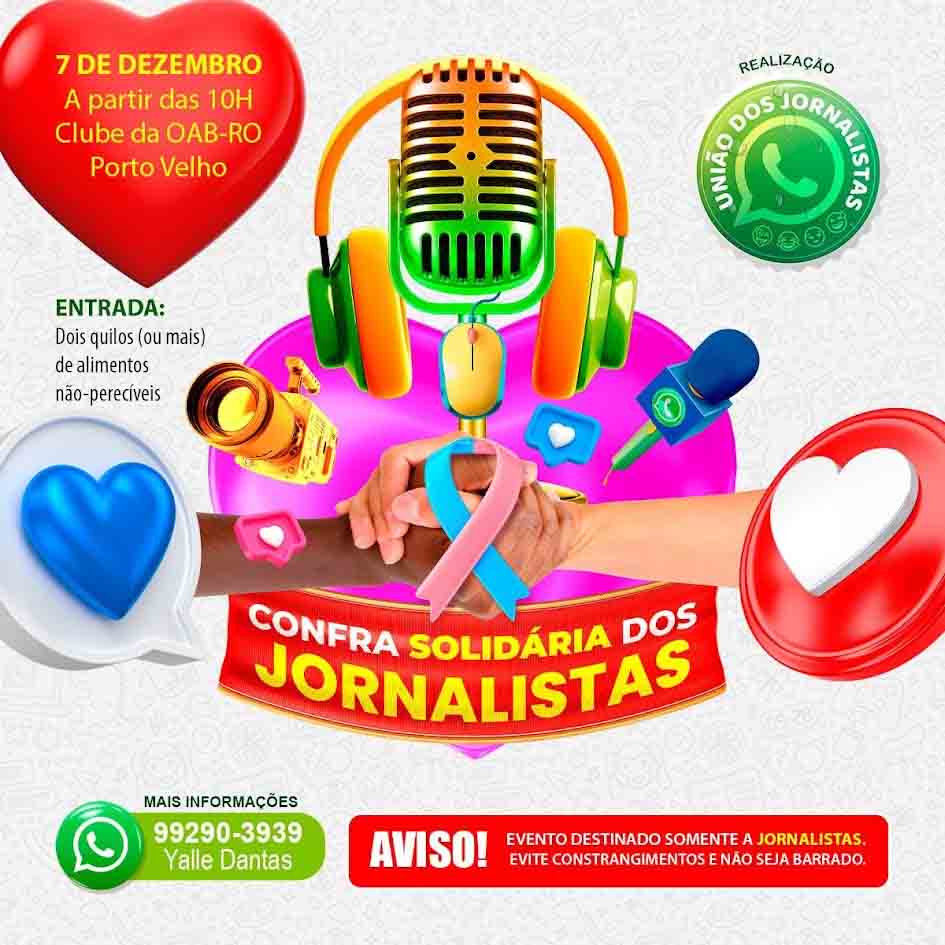 O evento é destinado somente a integrantes da comunicação de RO, (EVITE CONSTRANGIMENTO). Para participar, os jornalistas, repórteres, cinegrafistas, editores e demais profissionais da área deverão doar 2 kg de alimentos não perecíveis. A presidente do grupo, Yalle Dantas, explica que a iniciativa visa promover a confraternização entre os comunicadores e, ao mesmo tempo, auxiliar pessoas carentes, incluindo profissionais da imprensa que estejam passando por dificuldades financeiras.