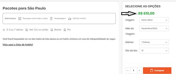 Seis destinos nacionais estão com uma super promoção de pacotes de viagens especiais para os consumidores de Rondônia. Com um investimento de R$ 651 é possível garantir 7 diárias com café da manhã em hotéis de São Paulo, além as passagens aéreas de ida e volta em voos que irão decolar de Porto Velho em novembro de 2023. (Veja detalhes na imagem abaixo). Acesse aqui essa promoção.