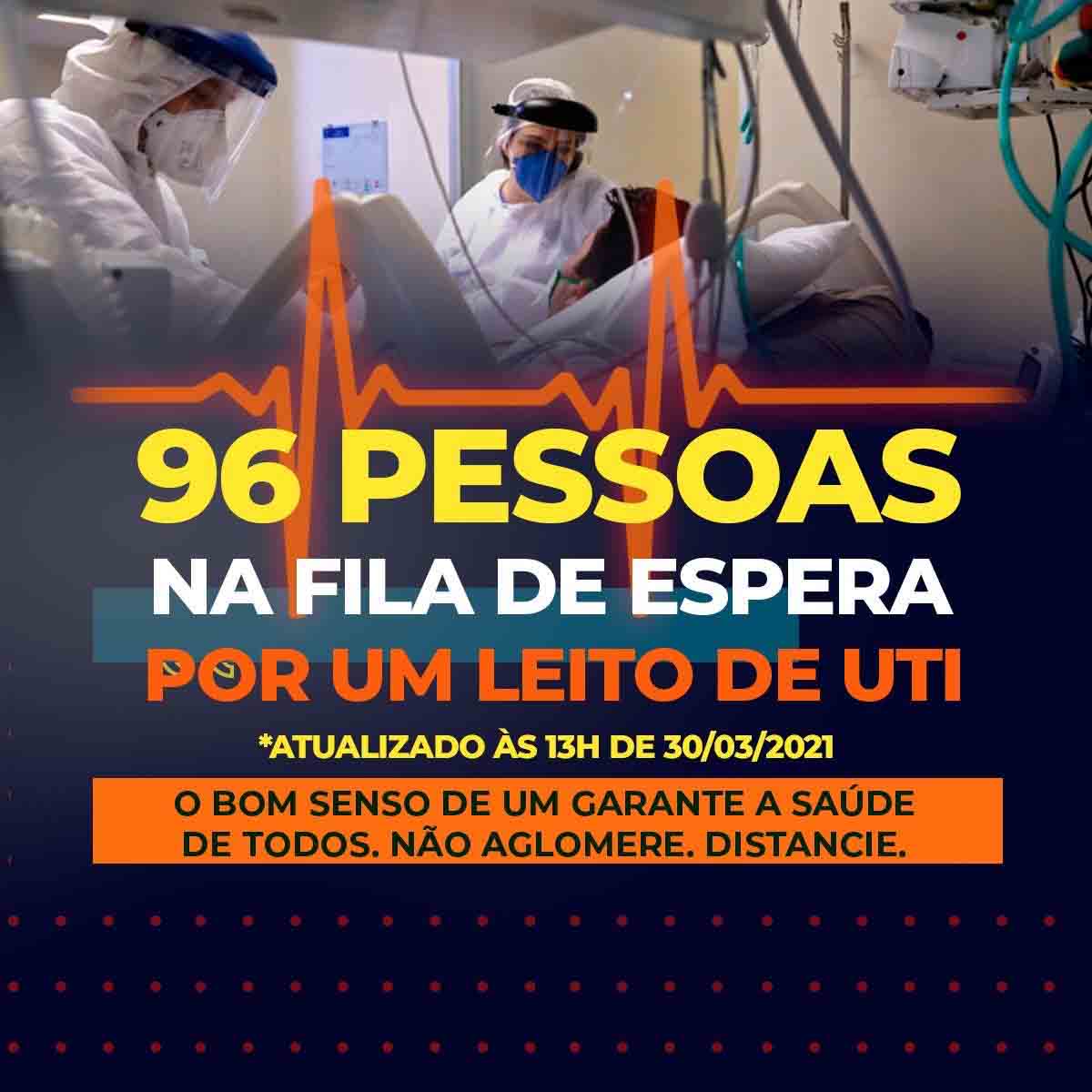 As UTIs (Unidade de Terapia Intensiva) em Rondônia, estão com 100% de ocupação, e até esta terça-feira (30), 96 pacientes aguardam na fila a espera de leitos para tratamento da Covid-19.