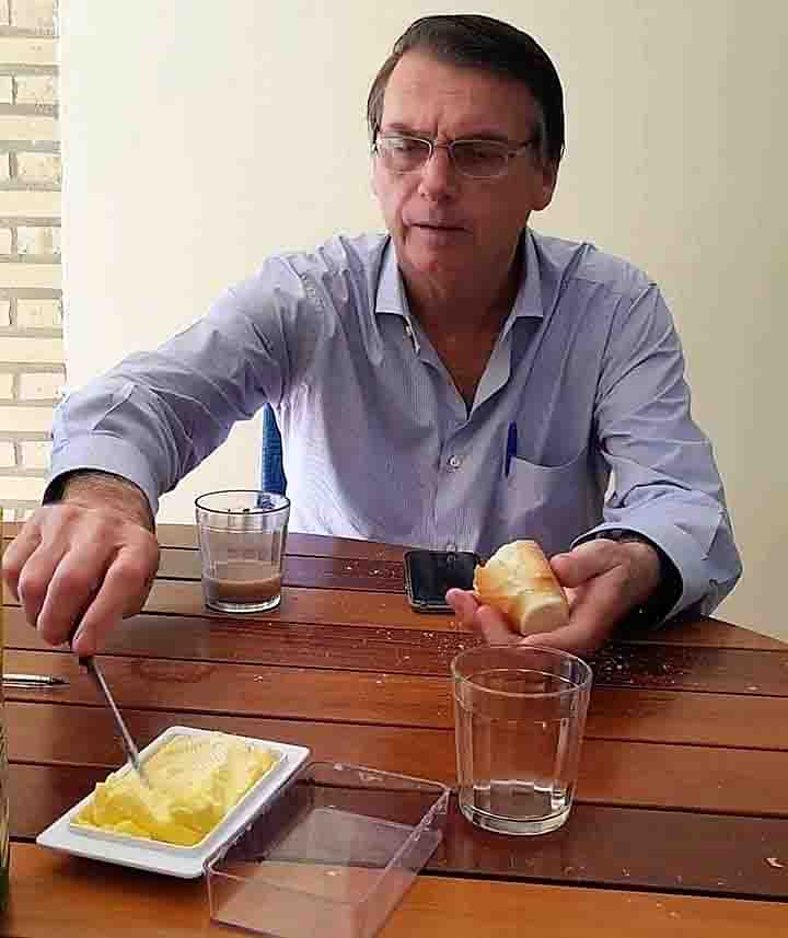 Igualmente ao Lula, o “Mito” se deixa filmar tomando café em copos americanos de vidro e com potes de margarina abertos em cima da mesa