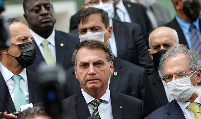 Bolsonaro e Guedes falam com jornalistas após audiência com o presidente do Supremo, Dias Toffoli. 07/05/2020 (Foto: ADRIANO MACHADO/Reuters)