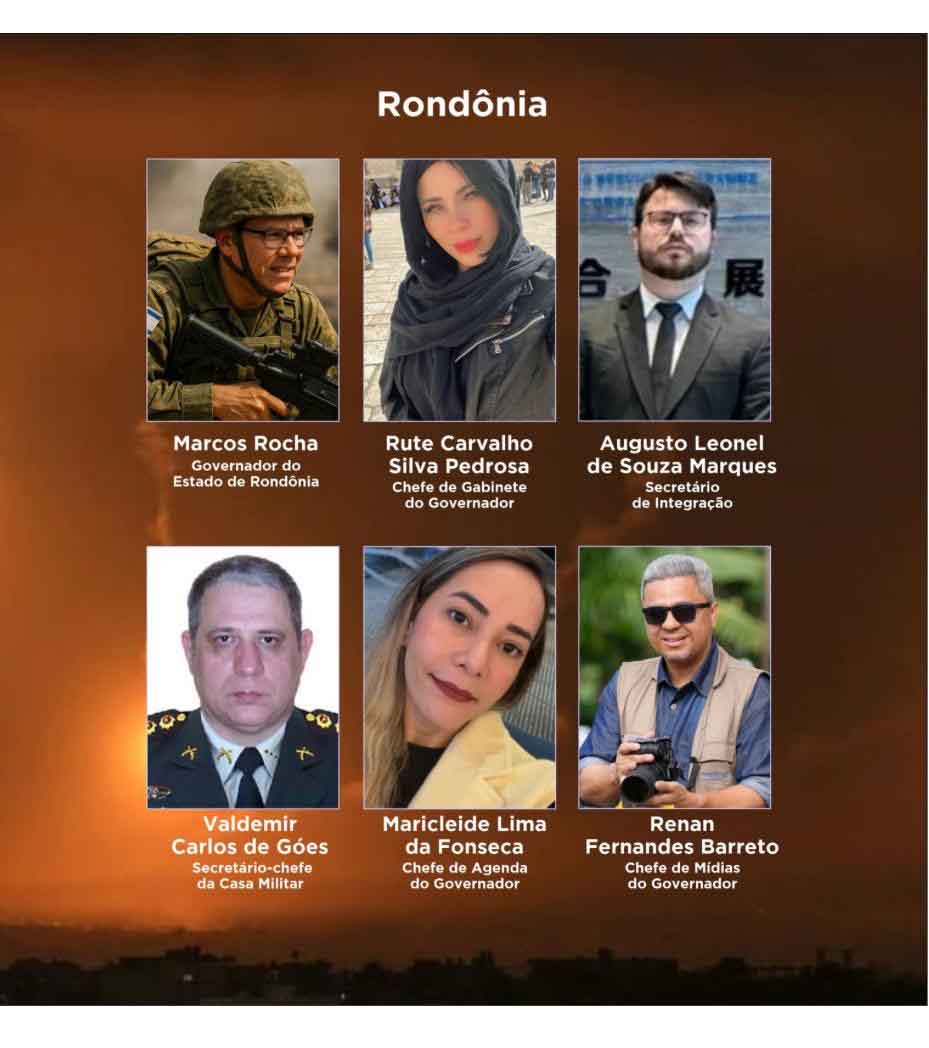 A comitiva de "alto nível" que acompanha Marcos Rocha em seu tour por Israel, que está sob bombardeio do Irã. No grupo foi até uma tal de chefe de agenda do governador e um chefe de mídias. Preço da fatura até este sábado: R$ 430 mil. Tudo pago pelos rondonienses. Quem atira com a pólvora alheia não economiza munição