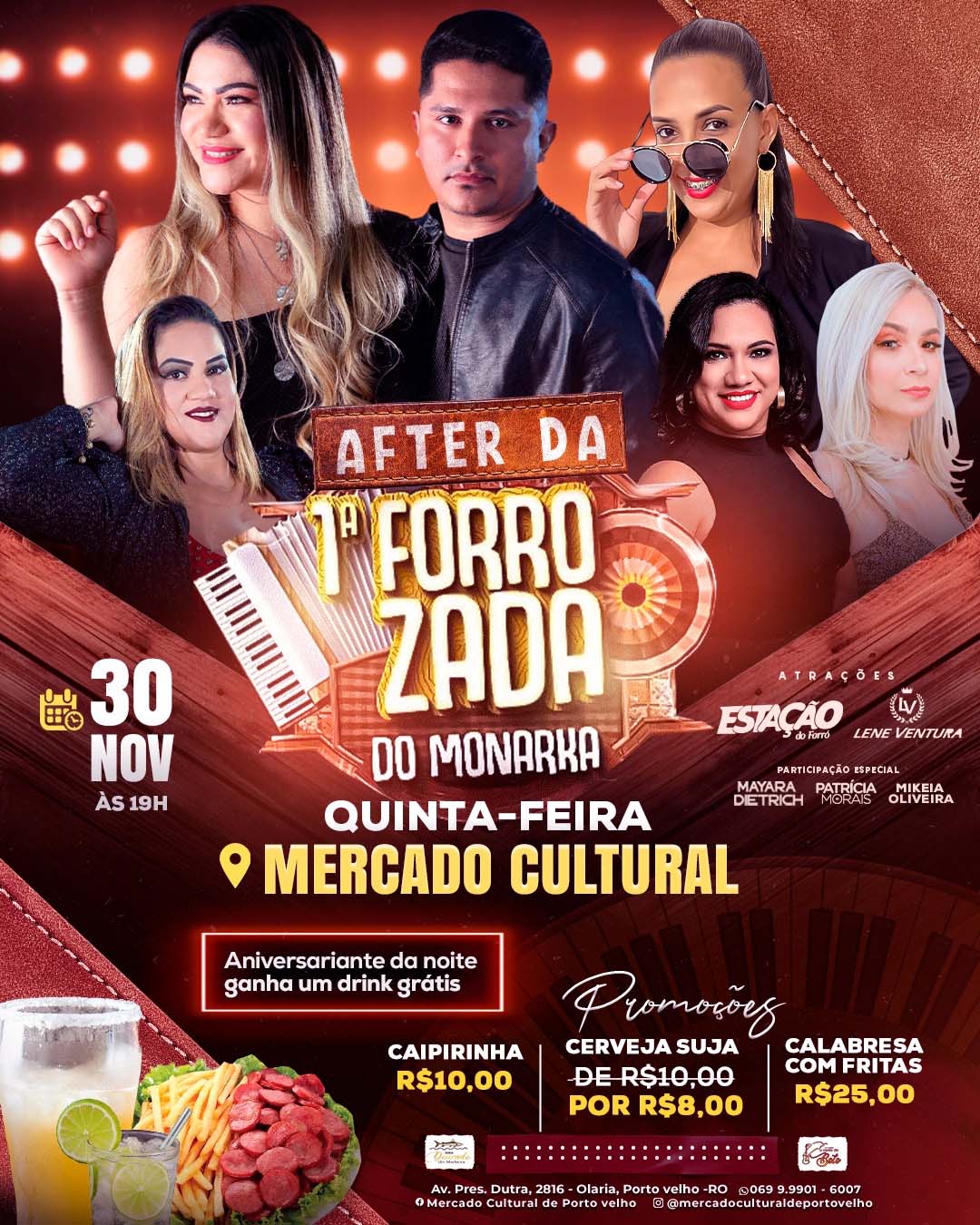 Depois do sucesso desse evento músical que ocorreu no último sábado, na casa de shows O Monarka, nesta quinta-feira, dia 30, será a vez de acontecer o after no Mercado Cultural, a partir das 19h, com show do grupo Estação do Forró, Mário Sam e Mikeia Oliveira, com participação especial das cantoras Patrícia Morais e Lene Ventura.