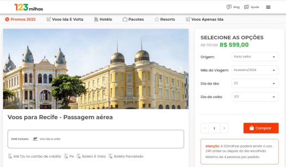 As ofertas de passagens aéreas são da 123milhas em voos flexíveis. As datas escolhidas serão preferencialmente mantidas, mas há casos de o bilhete ser marcado também um dia antes ou depois. Mas a dica antes de comprar as passagens é ler todas as regras desta promoção.
