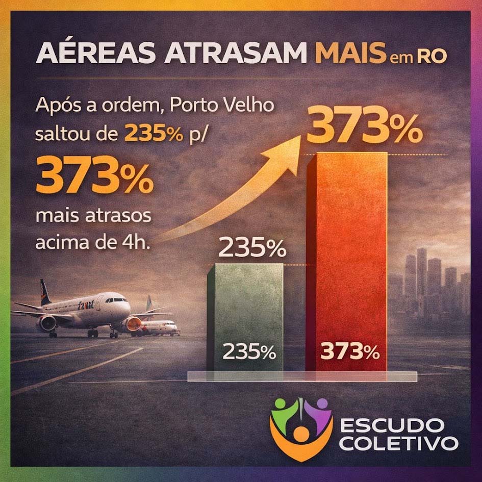 Os dados mais recentes mostram agravamento. No fim de 2025, Porto Velho registrou 374% mais atrasos superiores a quatro horas do que a média nacional.