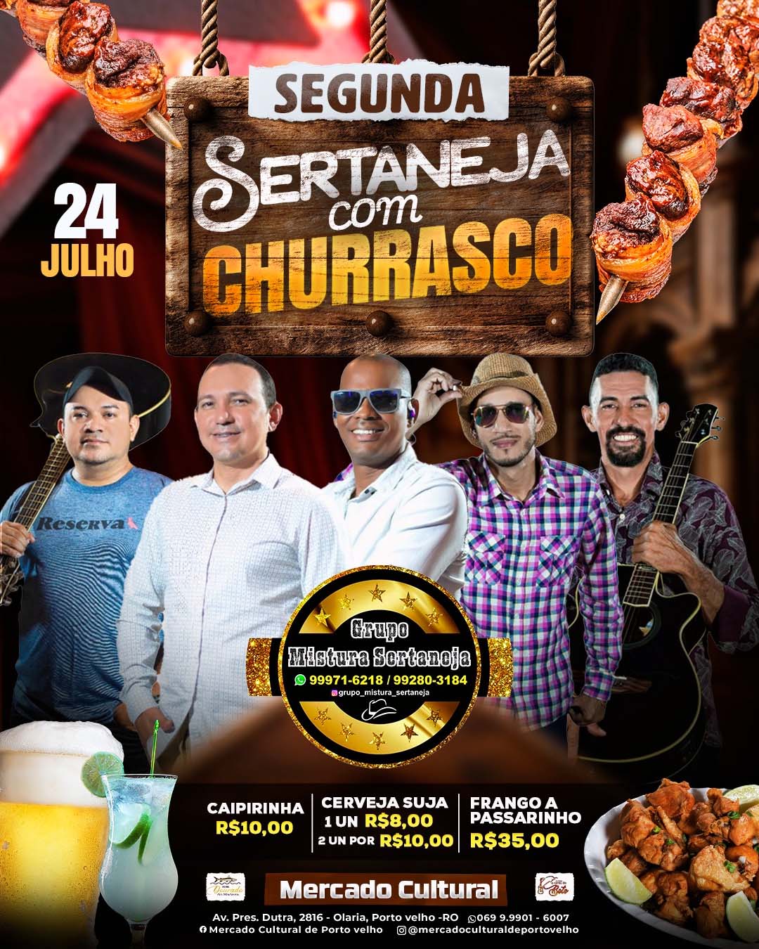 Tem novidades na considerada e melhor noite de segunda da capital rondoniense, a edição do dia 24, às 19h, além da churrascada e promoções de bebidas e petisco, terá showzaço do grupo Mistura Sertaneja no palco do Mercado Cultural de Pvh.
