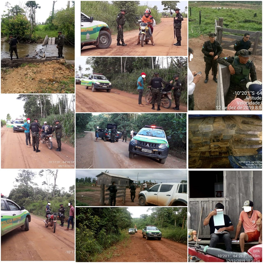 Nova Mamoré, Rondônia - Na segunda-feira, 16, o Batalhão de Polícia Ambiental (BPA), divulgou algumas ações realizadas na Unidade de Conservação - Parque Estadual Guajará-Mirim (PEGM) durante a fiscalização e monitoramento no entorno do Parque nos dias 11 e 12/12/2019. Uma pessoa foi presa e levada à Delegacia, por dificultar a fiscalização ambiental, um termo circunstanciado por transporte irregular de madeira, e ainda foram lavrados outros três autos de infração ambiental, dois por desmatamento em área de reserva legal e outro por impedir a regeneração de mata nativa através do plantio de capim e manutenção de rebanho.