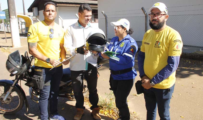 Blitz educativa do Detran orienta e distribui capacete e antena corta pipa em Porto Velho