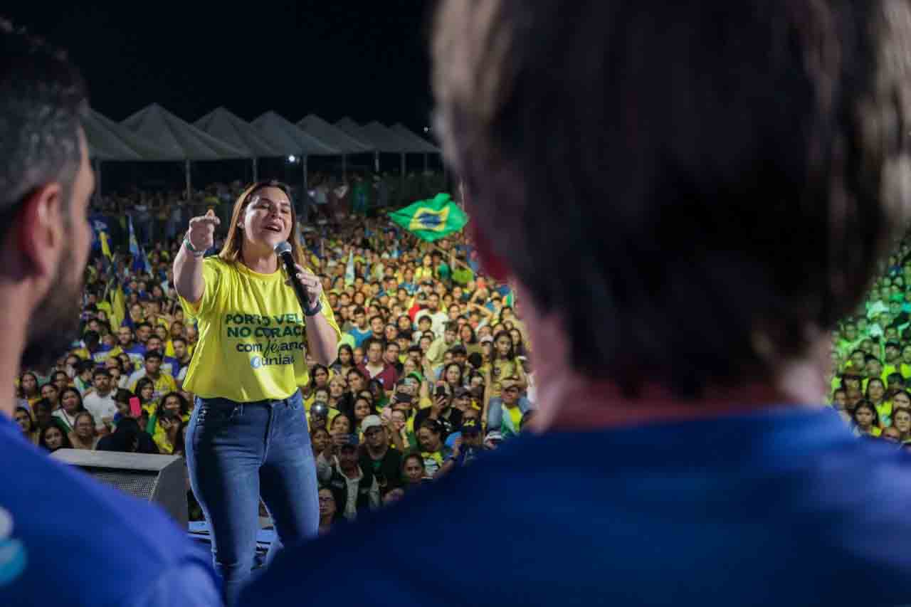 A ex-primeira-dama Michelle Bolsonaro também entusiasmou o público ao falar sobre o papel das mulheres na política, convidando todas as mulheres a se unirem à candidatura de Mariana. "Essa mulher corajosa que vocês têm aqui merece o apoio de todos. Porto Velho terá sua primeira prefeita, e Mariana Carvalho é quem vai mostrar a força e a competência das mulheres nessa missão", pontuou.