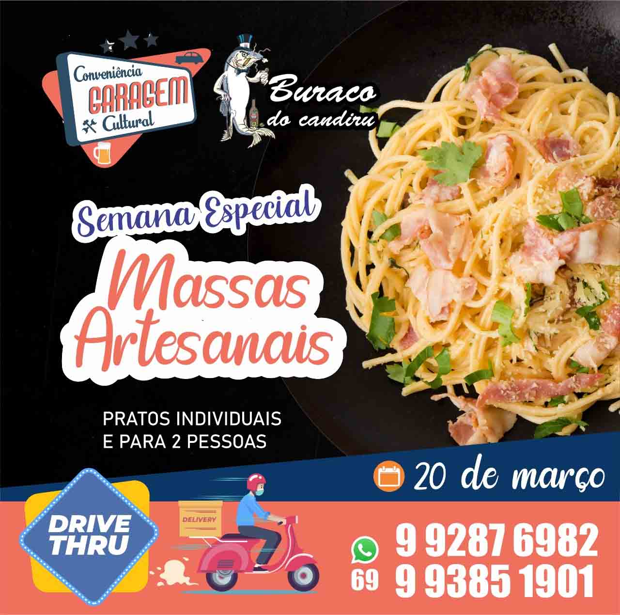 PORTO VELHO – No próximo sábado (20), o Buraco do Candiru em parceria com a Conveniência Garagem Cultural, vai realizar um festival de massas artesanais para manter aberto o bar mais charmoso de Porto Velho, localizado na Alameda Jornalista Euro Tourinho, 2863 – bairro Embratel, das 18 às 23 horas.
