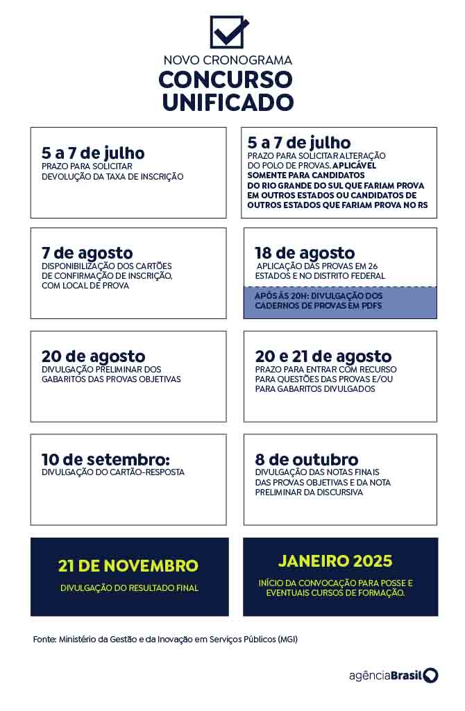 Mais cedo, o MGI reforçou que quem saiu da sala de aplicação das provas com o caderno de questões, o que era proibido, será identificado e eliminado do CNU, conforme previsto em edital. Segundo a ministra da pasta, Esther Dweck, há poucas pessoas nessa situação.