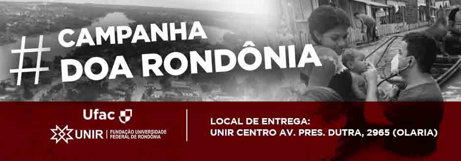 A Fundação Universidade Federal de Rondônia (UNIR) inicia nesta quinta-feira (25), em parceria com a Universidade Federal do Acre (Ufac), a campanha Doa Rondônia para arrecadar donativos para as famílias afetadas pela enchente no estado vizinho. O Acre enfrenta atualmente uma grave crise sanitária e humanitária com inundações que já afetam cerca de 130 mil pessoas, novo pico de Covid-19, surto de dengue e uma crise migratória.