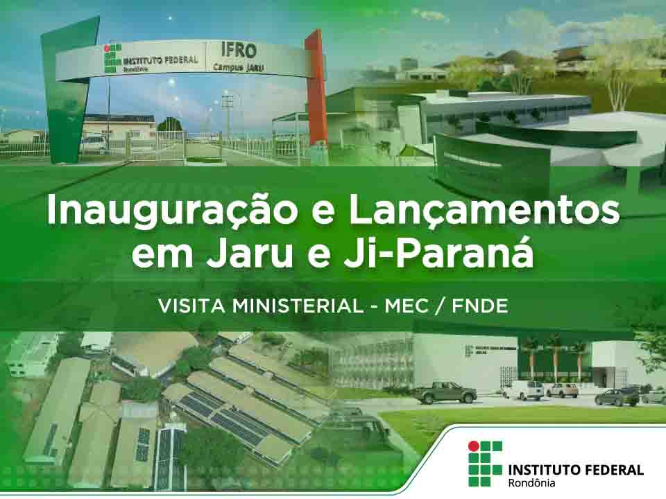 Na próxima sexta-feira (29), o Campus Jaru do Instituto Federal de Educação, Ciência e Tecnologia de Rondônia (IFRO) recebe a visita do Ministro da Educação, Milton Ribeiro. Na ocasião serão realizadas a Inauguração das Obras de Urbanização e Estruturação para acessibilidade física do Campus Jaru e o Lançamento da Clínica de Medicina Veterinária e dos Blocos de Laboratórios do Campus Jaru. No sábado (30), o Ministro segue para o Campus Ji-Paraná onde participa da cerimônia de Implantação dos Centros de Inovação Tecnológica do IFRO.