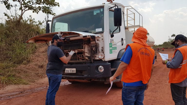 Em Pimenta Bueno, a prova prática para os cargos de motoristas e operadores de máquinas pesadas foi realizada na RO-010 (linha 25) no quilômetro 11,5.