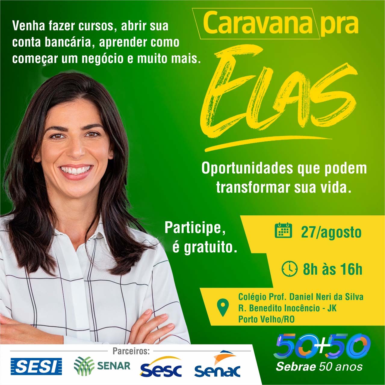 O evento Caravana Pra Elas é uma realização do Ministério da Economia com o Sistema S, em especial o Sebrae Nacional e os Sebraes estaduais. Em Porto Velho conta com apoio do Governo de Rondônia (Seduc), Prefeitura Municipal de Porto velho e Sesc.
