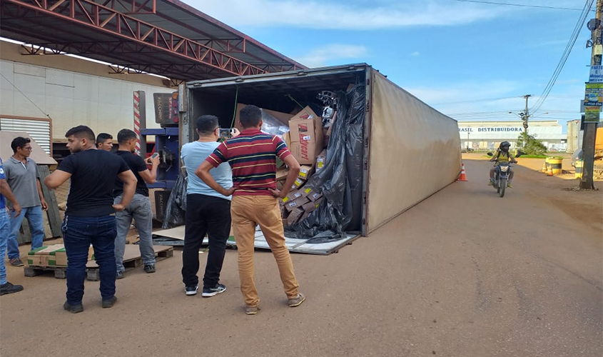 Carreta tomba próximo de faculdade na zona sul de Porto Velho