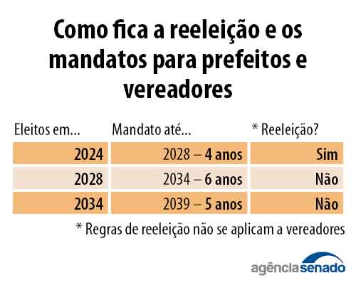 Já os senadores, que na proposta inicial passariam de oito para dez anos de mandato, também terão cinco anos, a partir de emenda apresentada pelo senador Carlos Portinho (PL-RJ). Além disso, a PEC extingue a alternância de eleições para o Senado, determinando que todos os 81 senadores sejam eleitos no mesmo pleito a partir de 2039.