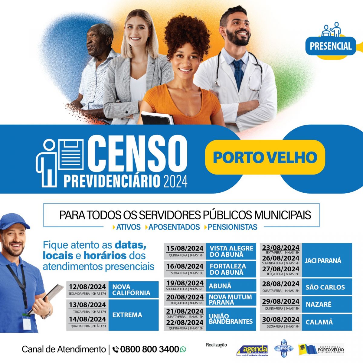 O Censo Previdenciário, realizado pelo Instituto de Previdência e Assistência dos Servidores Municipais (Ipam), destinado a todos os servidores efetivos ativos, aposentados e pensionistas do município, encerra seu processo de recadastramento presencial nesta sexta-feira (9). Já o atendimento online poderá ser feito até o dia 31 deste mês, conforme a Portaria de Prorrogação nº 329/2024. Para facilitar o recenseamento nos distritos, a equipe do Censo tem um cronograma a partir da próxima segunda-feira (12).
