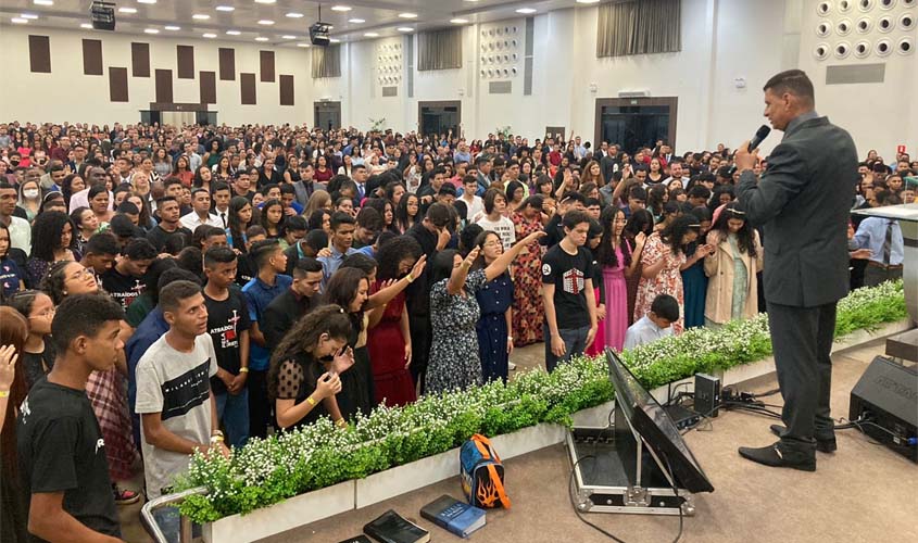 Com o tema: “Atraídos pela cruz de Cristo”, a multidão de jovens se reuniu neste final de semana para ouvir a Palavra de Deus, através dos pastores Eliel Silva de São Paulo/SP e Ary Paulo de Vilhena/RO.