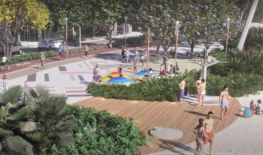 Com projeto de revitalização feito pelo escritório de arquitetura Índio da Costa, do Rio de Janeiro, o calçadão da Praia Central de Balneário Camboriú (SC) será um parque linear na beira do mar. A calçada da praia terá uma série de atividades como dog parks, playgrounds e academias de ginástica. Será realizado ainda a ampliação da calçada, ciclofaixa e pista para corrida, além de três tipos de quiosques de alimentação e serviços com diferentes tamanhos dispostos ao longo da orla. Projeto de iluminação noturna e área verde de restinga serão mais novidades.