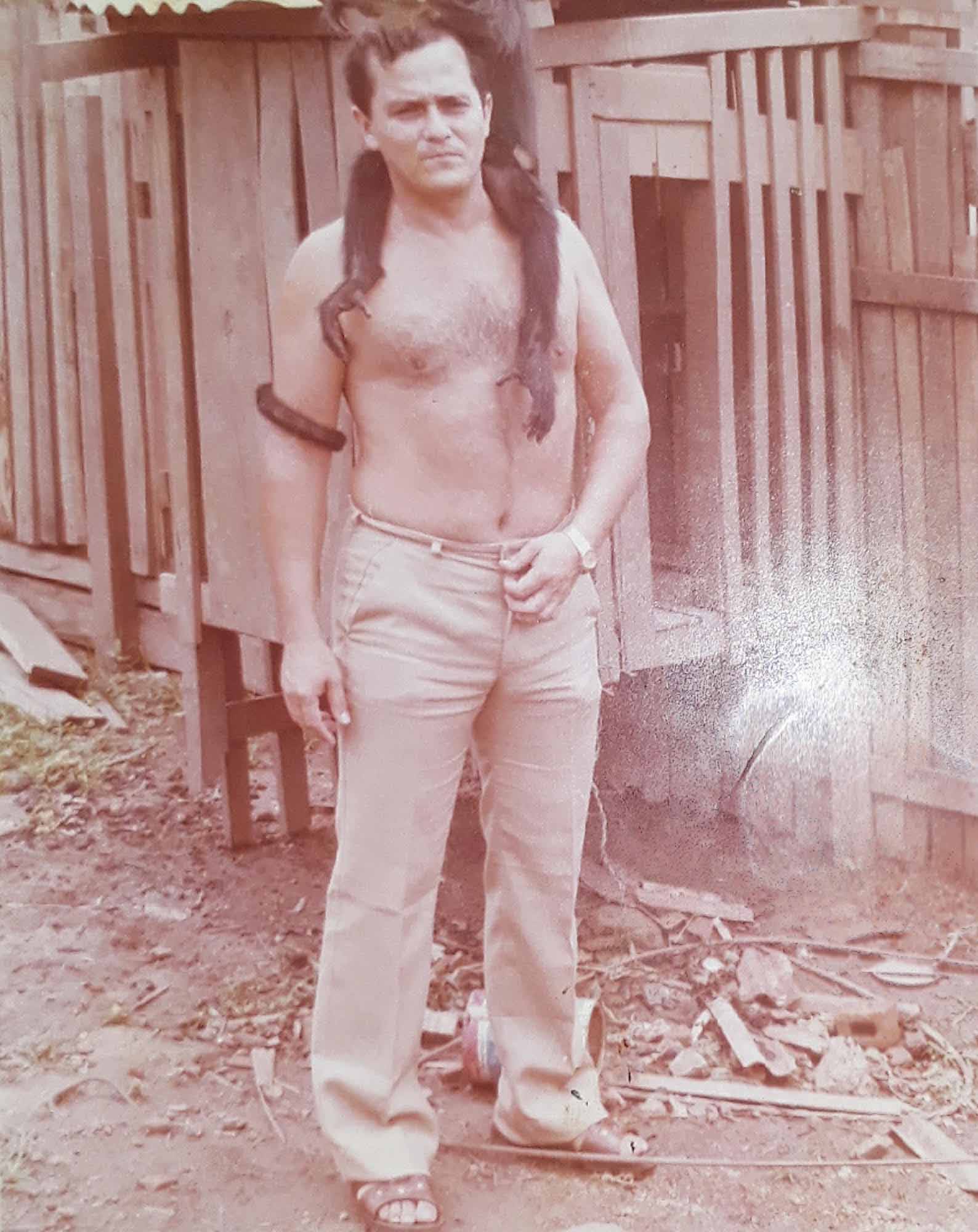 Um dia eu estava em casa, botei o macaco no ombro e (creio que) a dona Fátima fez uma foto, onde o cara estava tranquilamente como se meu ombro fosse um tronco de árvore para ele se apoiar.