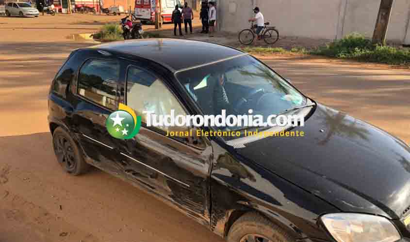 Porto Velho, Rondônia - Durante a tarde desta quinta-feira (18), policiais militares do Batalhão de trânsito fizeram o registro de um grave acidente de trânsito entre carro e moto no cruzamento das avenidas Pau Ferro e Açaí, no bairro Eldorado, zona sul.