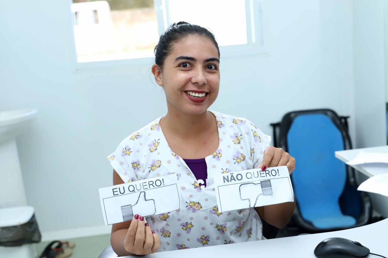 Maria, como é conhecida no Centro de Reabilitação de Rondônia (Cero), nasceu com disfagia, um problema para deglutir os alimentos, além de disfunção no palato (céu da boca). As duas situações, além de impedirem a correta alimentação, comprometeram a fala da criança, que ainda hoje balbucia sons entre uma ou outra palavra para conseguir informar o que deseja. “Percebo evolução significativa na Maria, melhora na fala, além de conseguirmos nos entender”, detalha Ana Késsia.