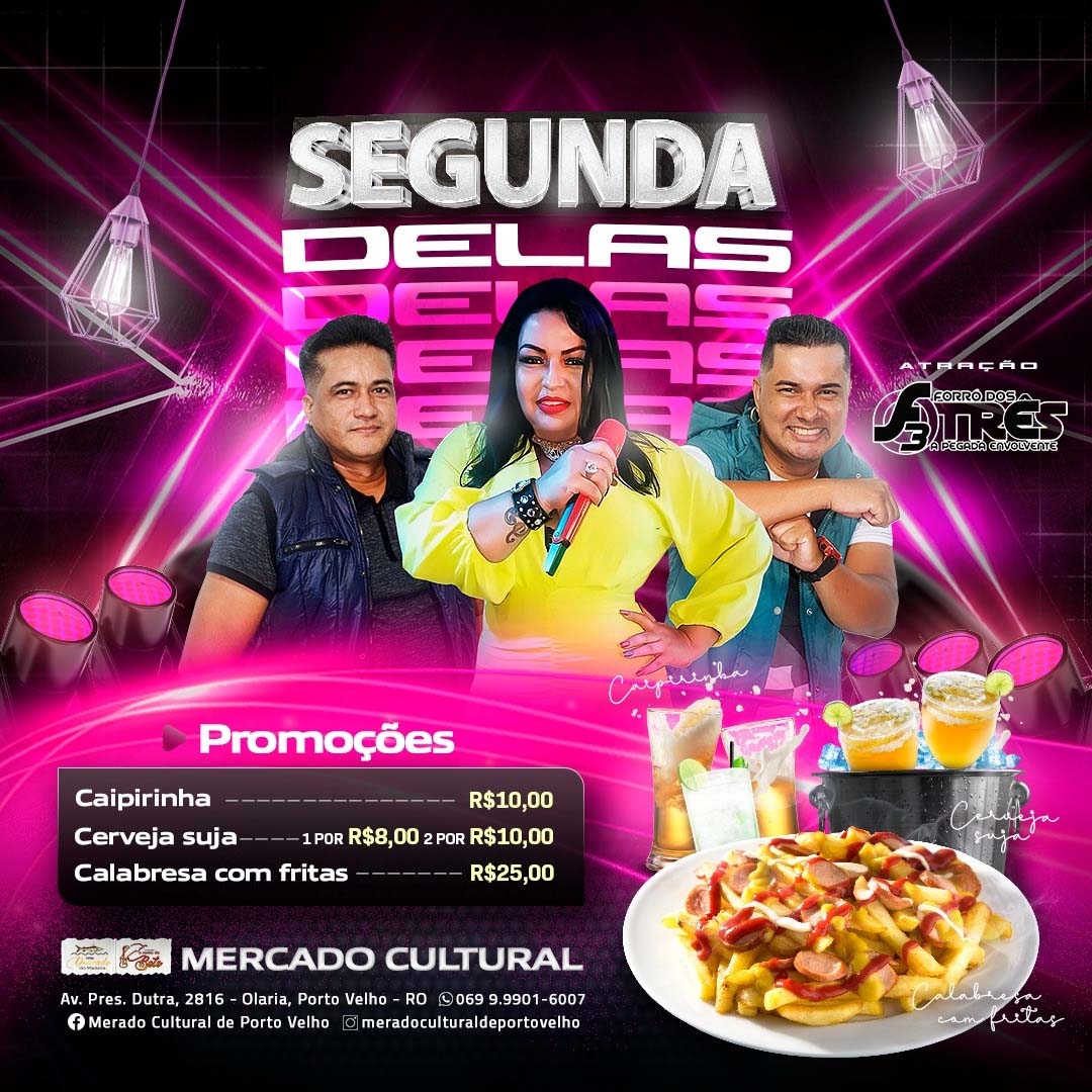 O evento gastronômico e musical "Segunda Delas", onde tem churrascada e promoções de bebidas e petiscos acontece toda semana com shows gratuitos no Mercado Cultural de Pvh, é considerada a melhor noite de segunda da capital rondoniense.