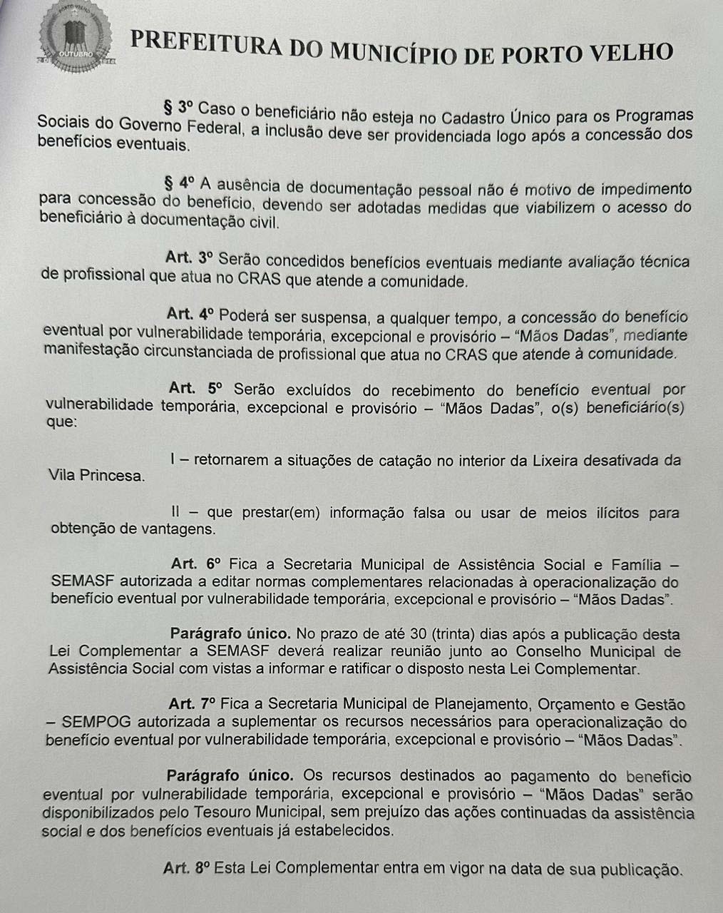 “Com a criação desse programa, a Prefeitura de Porto Velho busca oferecer suporte às famílias de catadores em momentos de vulnerabilidade temporária, contribuindo para a melhoria de suas condições de vida”, finalizou vereador Fogaça.