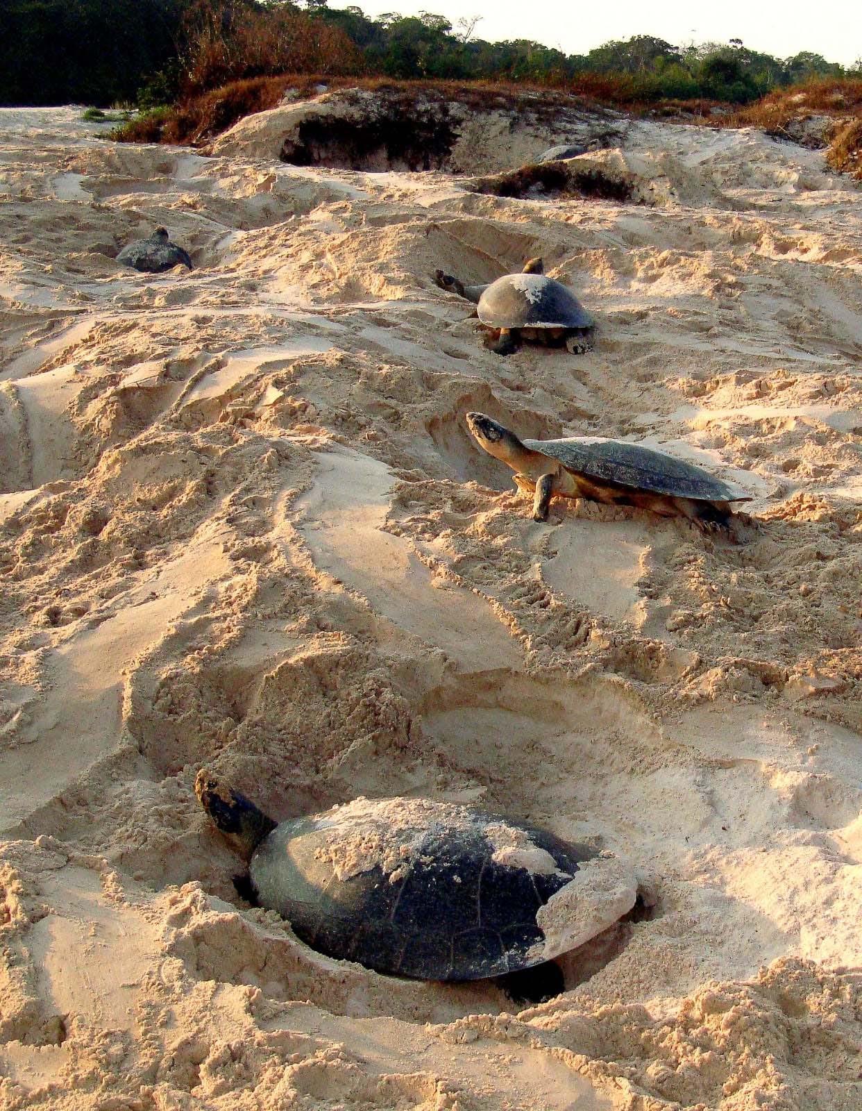 Normalmente os QUELÓNIOS, Tracajas começam a desova no final do mês de agosto; em seguida é a vez das tartarugas, e mata-mata e toda a desova se estende durante todo mês de setembro