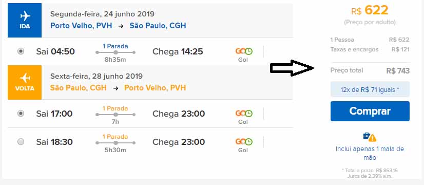 Mais um final de semana com ótimas ofertas de passagens aéreas nos voos de Rondônia.Você pode aproveitar as promoções deste final de semana para viajar no inverno para destinos bastante procurados pelos turistas. De Porto Velho para São Paulo as passagens de ida e volta podem ser compradas neste final de semana por R$ 743 (Veja na imagem acima). Quem está em São Paulo pode viajar para Rondônia pagando o mesmo valor. Basta comprar as passagens de ida e volta.