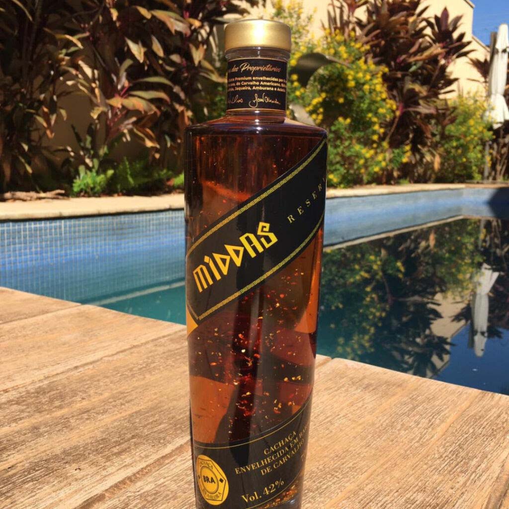 O ouro é maior diferencial da Cachaça Middas. Produzido e beneficiado em um laboratório na Alemanha, o ouro recebe o certificado da União Europeia por seu altíssimo grau de pureza e segurança para o consumo humano