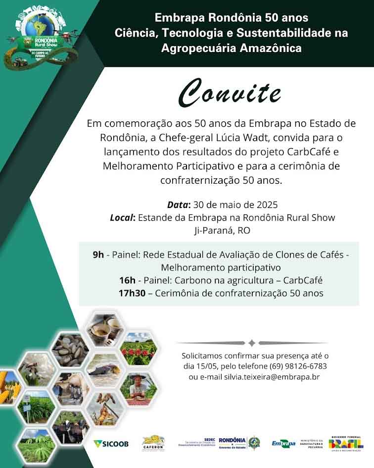 Em comemoração aos 50 anos da Embrapa no Estado de Rondônia, a Chefe-geral Lúcia Wadt, convida para o lançamento dos resultados do projeto CarbCafé
