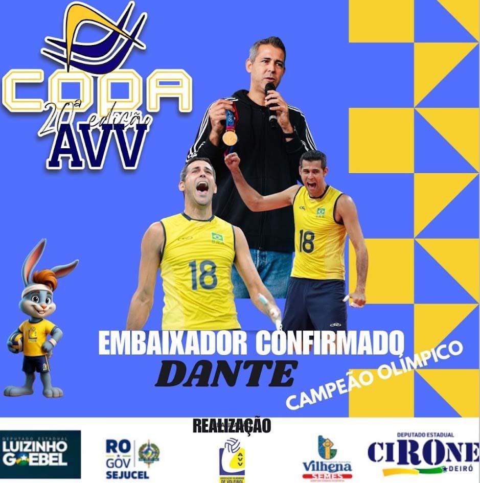 Dante e Fofão prestigiam o evento organizado pela Associação Vilhenense de Voleibol. Os dois atletas somam seis medalhas olímpicas.