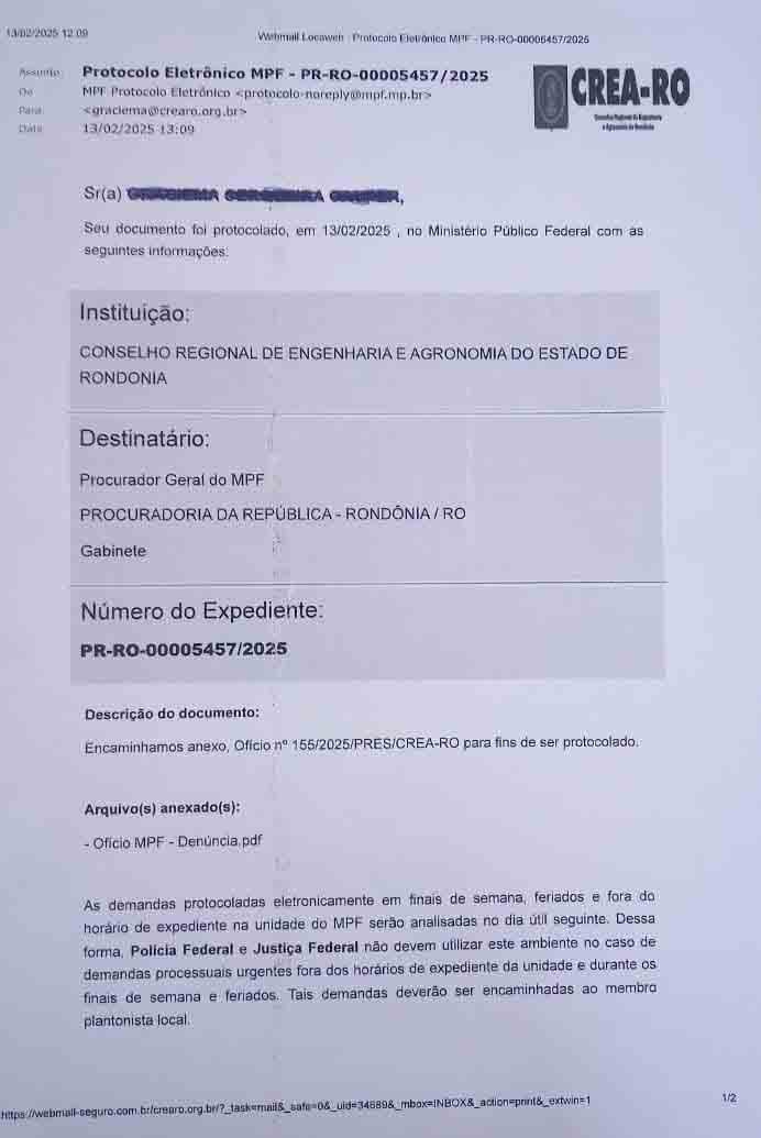 O CREA-RO segue monitorando o caso e se coloca à disposição para colaborar com os órgãos competentes e as prefeituras, no intuito de proteger os interesses da sociedade rondôniense.