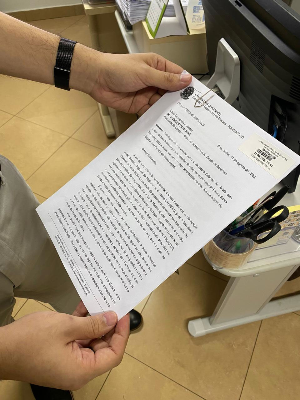Conforme noticiado pelo então Deputado Federal, Léo Moraes, na tarde desta terça-feira (11) foi protocolado no Conselho Regional de Medicina de Rondônia (Cremero) um ofício solicitando a intervenção junto a Secretaria Estadual de Saúde para transferência de pacientes que se encontram hoje no Hospital João Paulo para os hospitais de retaguardas Hospital de Base e Santa Marcelina.