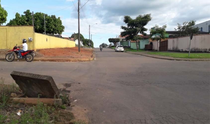 Criança solta freio de mão de veículo que desce morro e por pouco não bate em muro, em Jaru