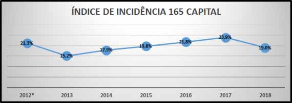 Segundo o levantamento do Registro Nacional de Acidentes e Estatísticas de Trânsito do Detran (Renaest) no ano de 2017 ocorreram 5.199 abordagens e 1.244 motoristas autuados, com 21,3% de incidência. Já em 2018 o número de abordagens dobrou, passando para 10.590, com 2.016 motoristas autuados, totalizando em 19% de incidência.
