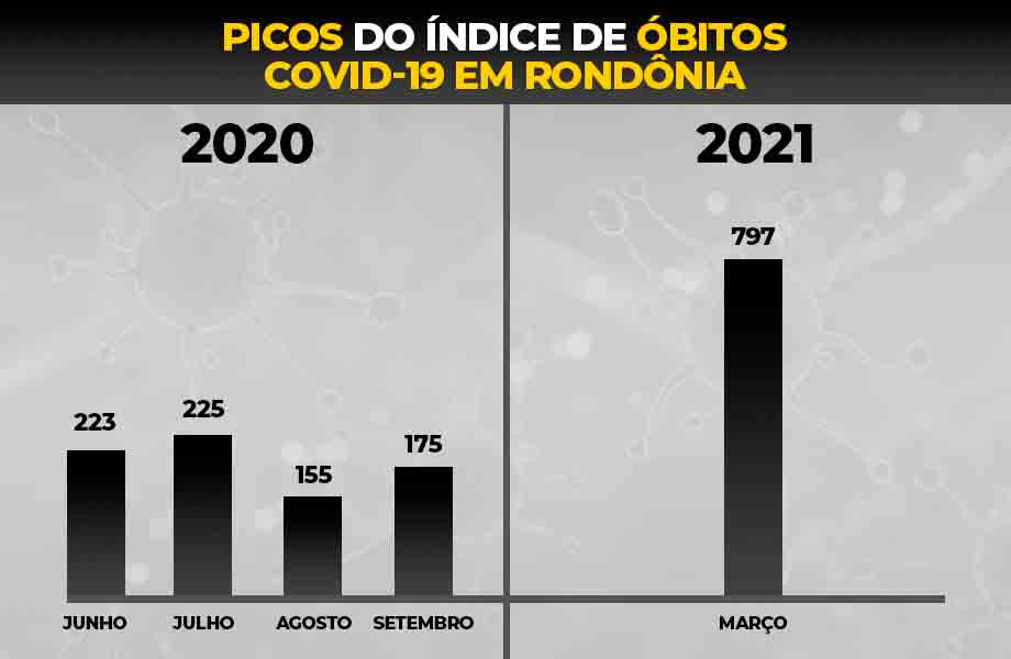 Embora o quantitativo seja alto, comparado a 2021, após completar um ano da primeira infecção de um cidadão rondoniense, apenas no mês de março, foram registrados 797 mortes de pessoas em decorrência da doença, consolidando-se até o momento o maior índice já registrado na história da pandemia no Estado. Ao todo, de acordo com a edição 382 do boletim diário, a região já soma: