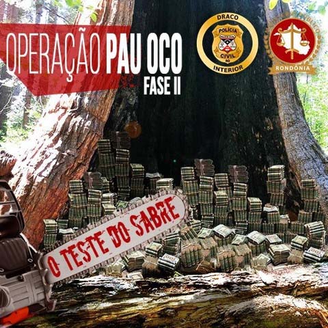 A Polícia Civil de Rondônia, por meio do seu Núcleo de Repressão às Ações Criminosas Organizadas do Interior (DRACO 2), juntamente com o Ministério Público de Rondônia (GAECO e 6ª PJ), contanto com apoio técnico do Tribunal de Contas do Estado de Rondônia e do Ministério Público de Contas, deflagrou nesta data mais uma fase da operação denominada “Pau Oco”.