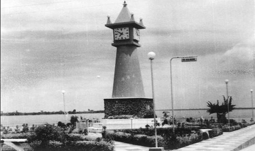 FOTO DO DIA: Permitindo uma visão privilegiada do Rio Amazonas, fica Praça do Relógio, em Itacoatiara/AM. A escadaria a sua frente ia até o porto da cidade, onde os navios transportando equipamentos e homens paa a construção da ferrovia Madeira-Mamoré, ou retornando da obra, estacionavam O relógio fica nas proximidades da Casa Oscar Ramos, entreposto da Madeira-Mamoré durante muito tempo desde a construção da ferrovia.