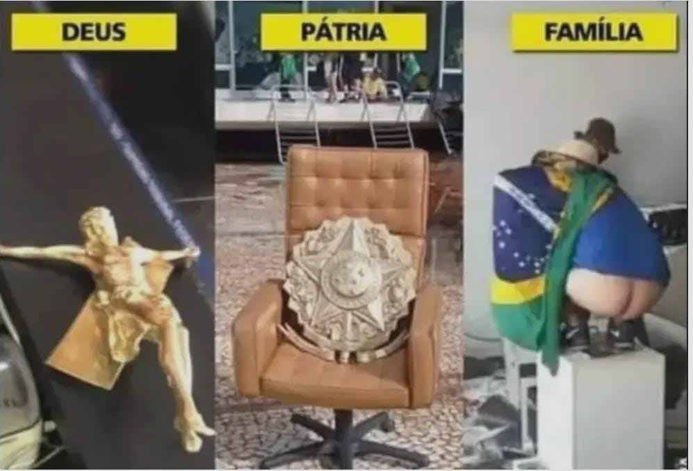 E esse paraíso é Jair Bolsonaro continuar presidente do Brasil. Nossa bandeira jamais será vermelha! Negros, homossexuais, índios, quilombolas, pessoas pobres, umbandistas, comunistas e militantes da esquerda em geral jamais terão acesso ao poder numa nação séria como a nossa. Essa possibilidade não está escrita na Bíblia nem em nenhum outro lugar. O nosso “eterno presidente” vai voltar e vai mandar prender todos os ministros do STF que não concordarem com ele. Vai fechar o Congresso Nacional se os políticos não o apoiarem e vai também mandar para o exílio quem ousar lhe fazer oposição. Vamos fechar todas as rodovias do país. Vamos obstruir avenidas. As forças policiais estão com a gente também. Vamos tomar conta de Brasília e das principais cidades. Todos devem vestir verde e amarelo e plotar o nome do “ungido” no seu carro e em suas casas. “Mito” para sempre nosso presidente! Deus, pátria e família é nosso lema.