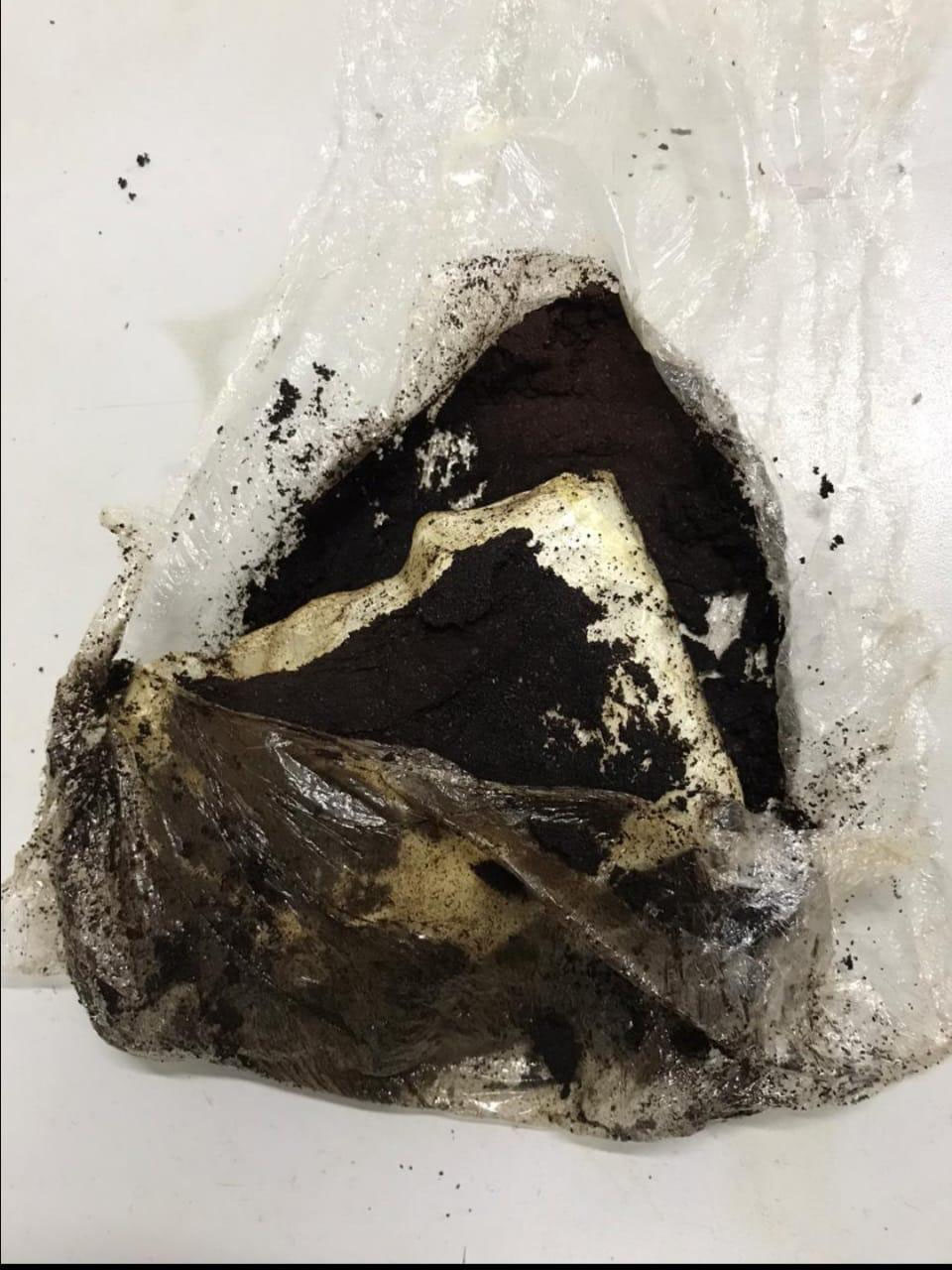 Durante verificação, foi constatado que se tratava de um outro paconte em meio a pó de café para camuflar o odor da droga. Foram achadas mais de 100 gramas de maconha do tipo skank, uma super droga avaliada em R$ 2.000 , e que pertencia ao sobrinho do preso, detido na Itália pelo mesmo crime.