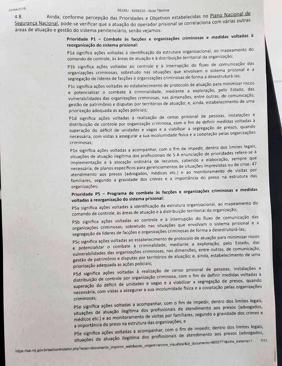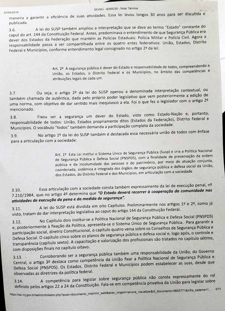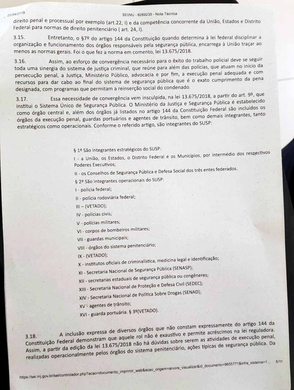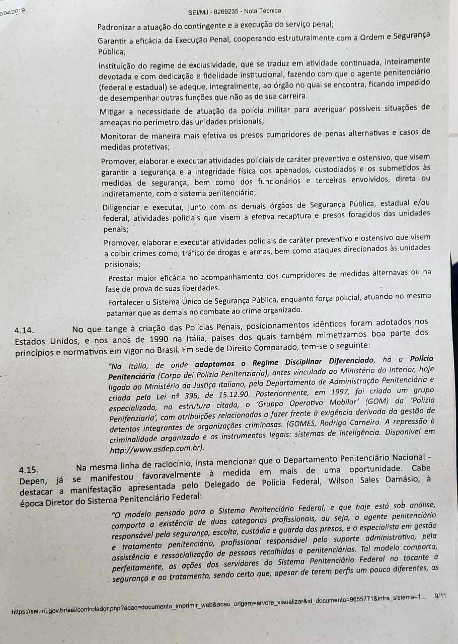 Segundo a nota, a aprovação da PEC, que é discutida há 15 anos, atenderá o aperfeiçoamento dos serviços penitenciários e da segurança pública, no combate ao crime organizado e redução dos índices relacionados à violência no Brasil. “A medida reforça a relevante função de segurança pública exercida pelos servidores prisionais e a responsabilidade crescente destes profissionais na gestão da segurança prisional”, registra o documento assinado por Bordignon, que é delegado de carreira da Polícia Federal.