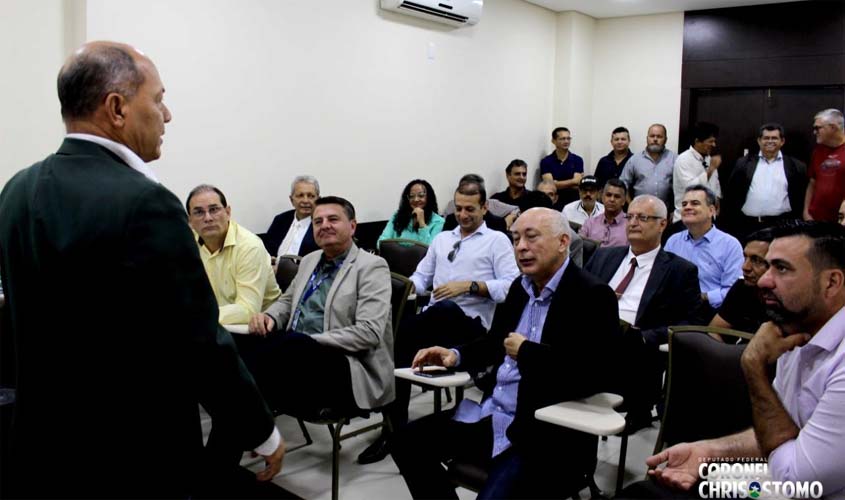 A reunião foi mediada pelo empresário César Cassol que reuniu a classe empresarial de diversos segmentos para apresentar as demandas do setor ao deputado federal Coronel Chrisostomo nesta sexta-feira (19) no Golden Hotel em Porto Velho.