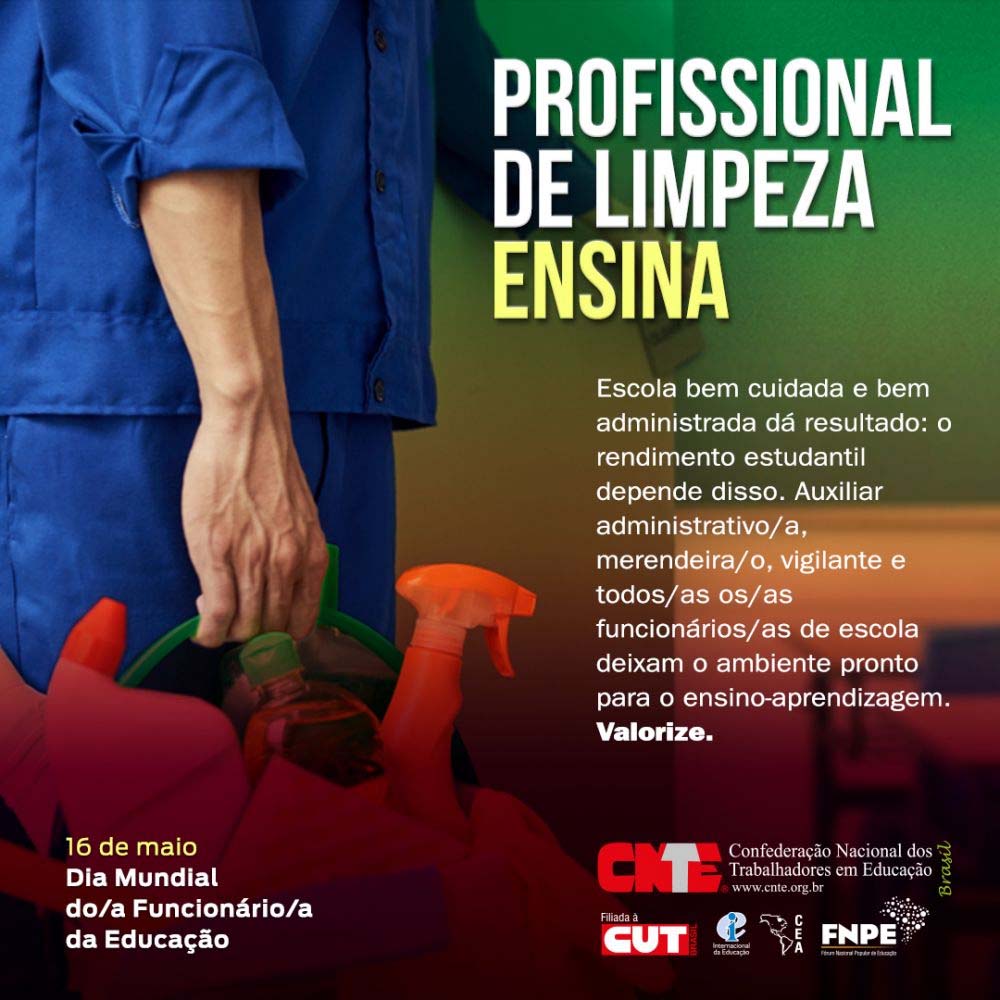 Criado em 2018 pela Internacional de Educação (IE), o Dia Mundial do Funcionário e da Funcionária da Educação é comemorado no dia 16 de maio. A data tem o intuito de dar visibilidade à luta pela valorização, formação e reconhecimento destes profissionais.
