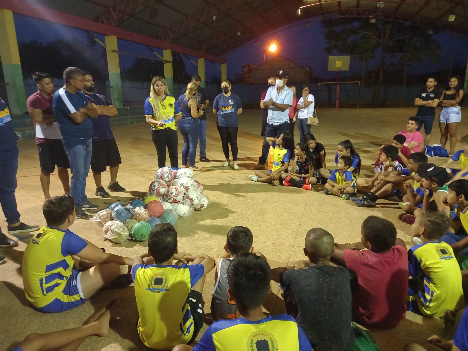 A escolinha do programa Talentos do Futuro II, na modalidade de futebol, que funciona na quadra da Escola Municipal José Augusto da Silva, distrito de Extrema, recebeu da Prefeitura de Porto Velho a reposição de material esportivo. Mais de 150 crianças foram beneficiadas com as reposições por meio da Secretaria Municipal de Esportes e Lazer (Semes).