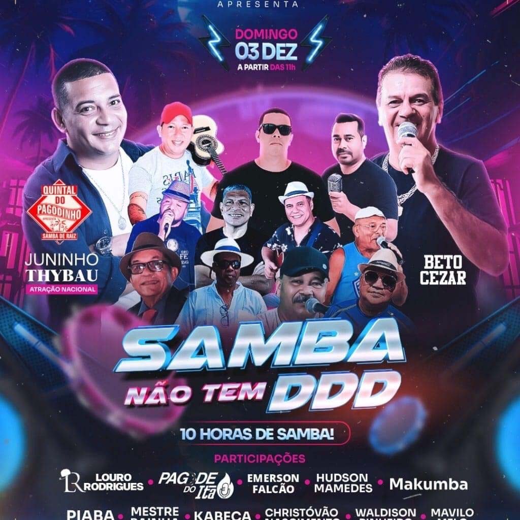 Com previsão de ter 10h de samba, neste domingo, a partir das 11h, o palco da casa de shows, O Monarka, recebe o evento músical o "Samba Não Tem DDD", com atração nacional, Juninho Thynau, primo do Zeca Pagodinho, e partições de diversos consagrados grupos de pagode e samba da região.
