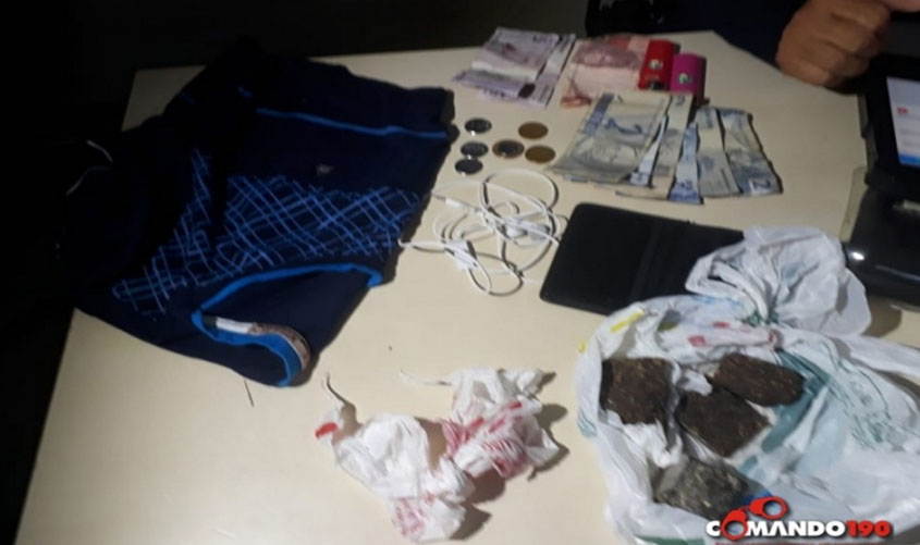 Na revista, os PM’s localizaram várias porções de Maconha e Cocaína e identificou o suspeito como sendo Douglas Rodrigues Gonçalves, ex-presidiário da comarca de Ouro Preto do Oeste que já cumpriu pena por Roubo e Furto.