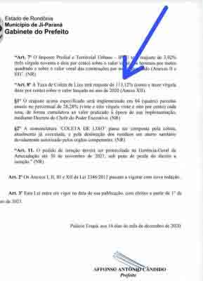 A iniciativa do parlamentar, que neste ano foi escolhido, numa chapa puro sangue, vice-prefeito ao lado do ex-vereador Izaú Fonseca (MDB), que vai administrar o município, impõe aos jiparanaenses um aumento de mais de 113% na taxa de coleta de lixo.